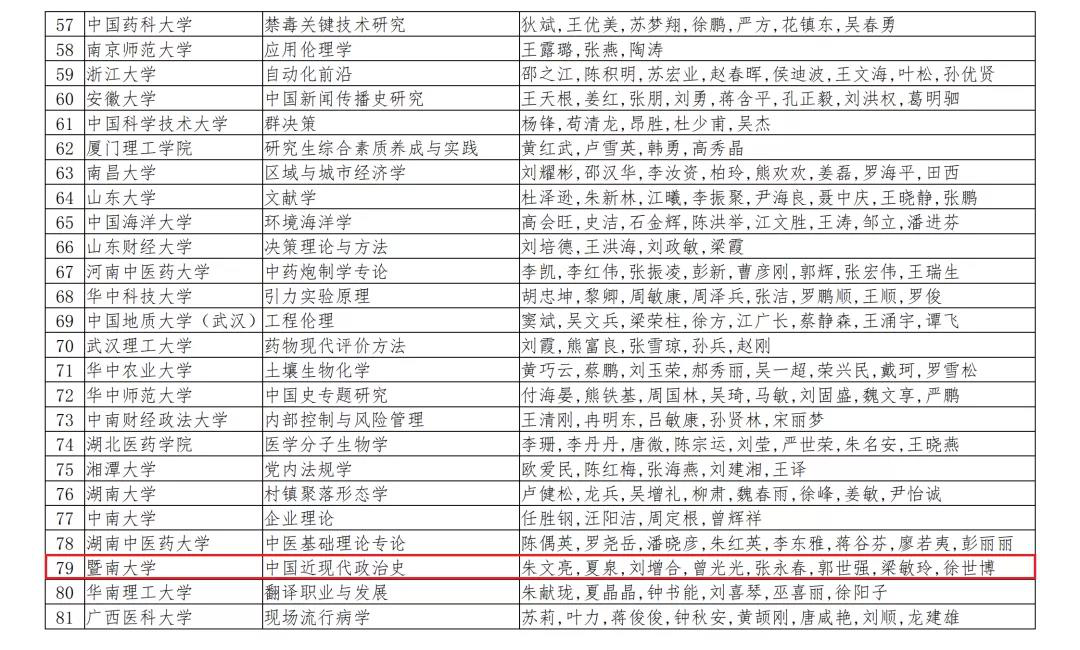 喜讯|暨南大学文学院1门研究生课程“中国近现代政治史”上榜教育部首批课程思政示范课程、课程思政教学名师和团队公示名单