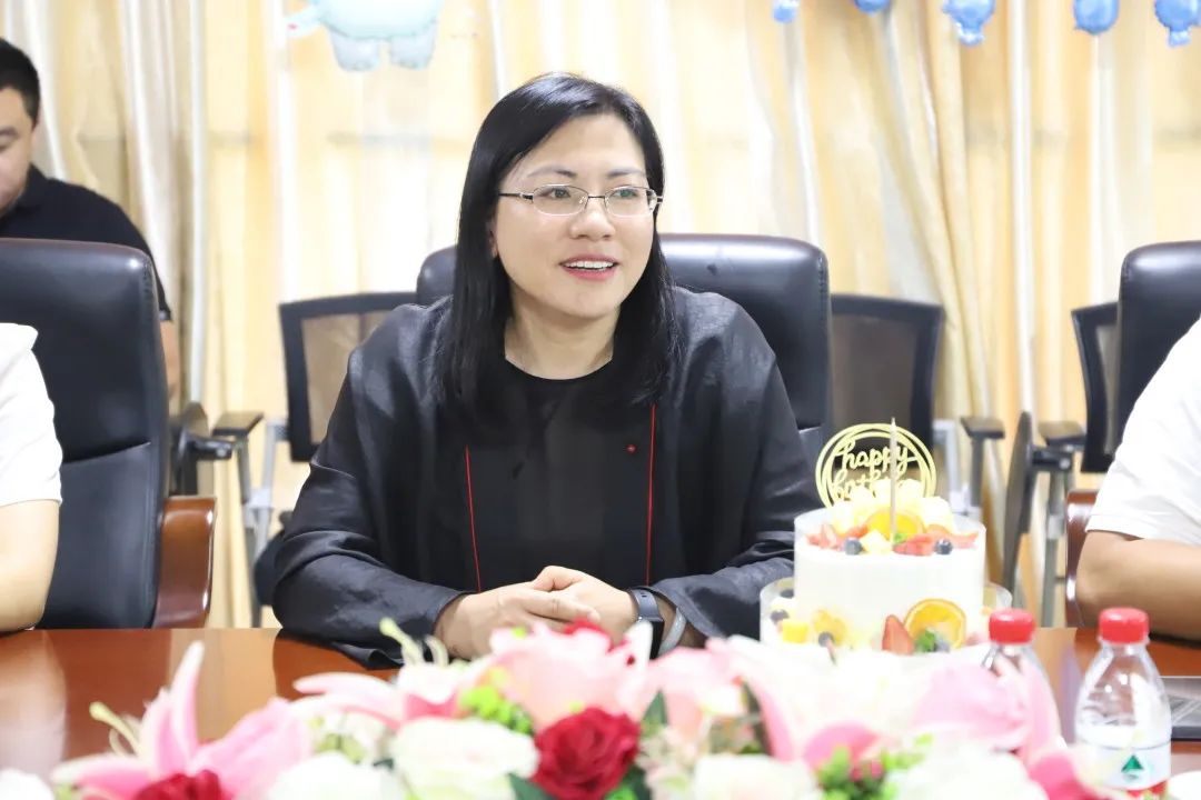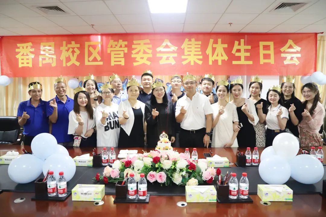 7月16日中午,番禺校区管委会在番禺校区图书馆617会议室举办了2021年上半年集体生日会。番禺校区管委会40余名同事齐聚一堂,共享温馨时刻。  番禺校区党工委常务副书记、工会主席区向丽首先代表校区党政领导班子向2021年上半年生日的同事送上诚挚的生日祝福,向积极筹备此次活动的全体工作人员表示衷心的感谢,并预祝大家假期快乐。