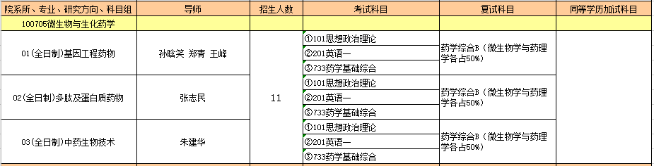 专业:100705微生物与生化药学