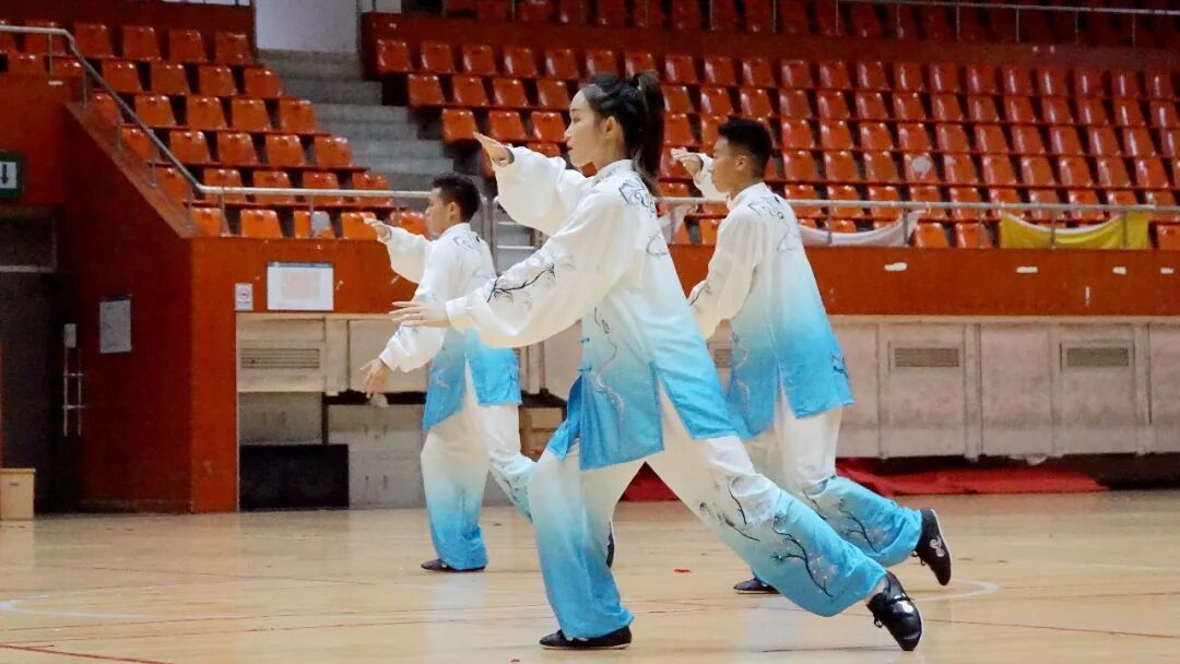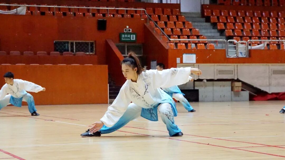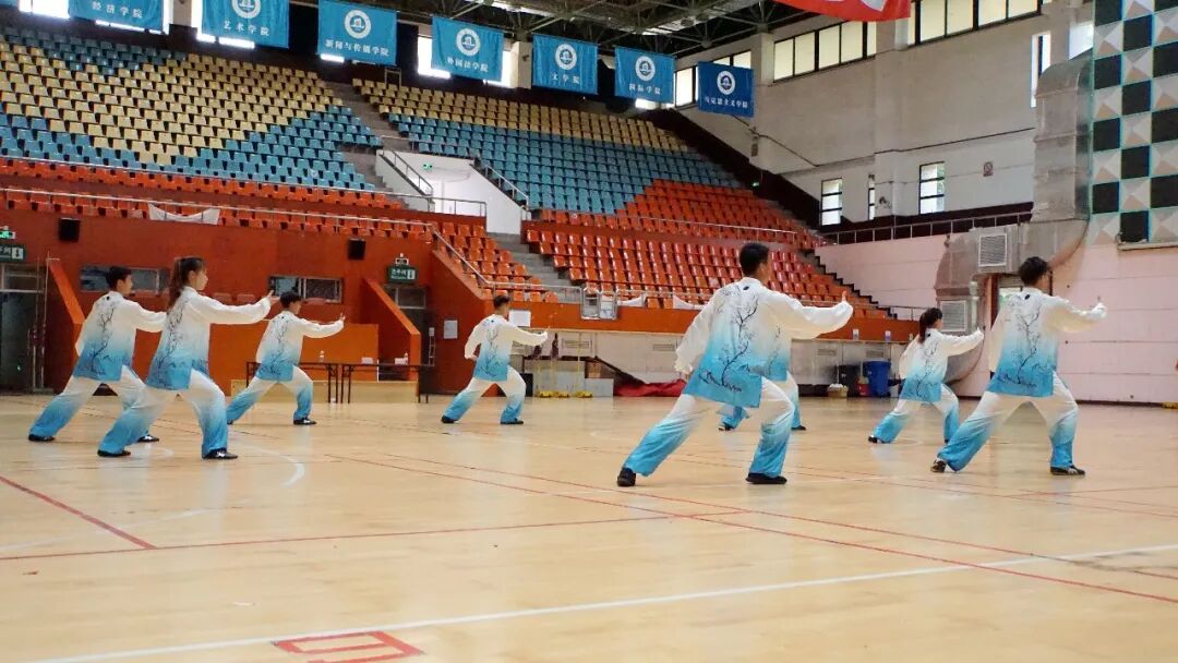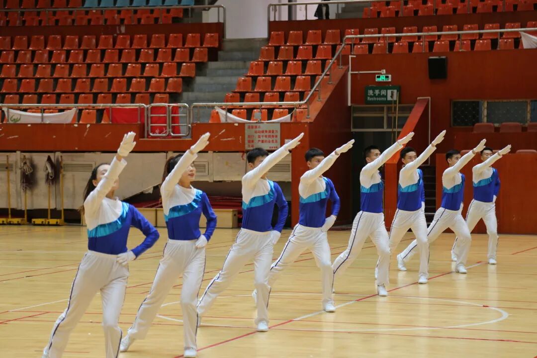 汇报展示前主持人胡玉娜老师 对即将展示的项目进行了简要介绍 同学们在场上充分展示自己的训练成果 赢得阵阵掌声