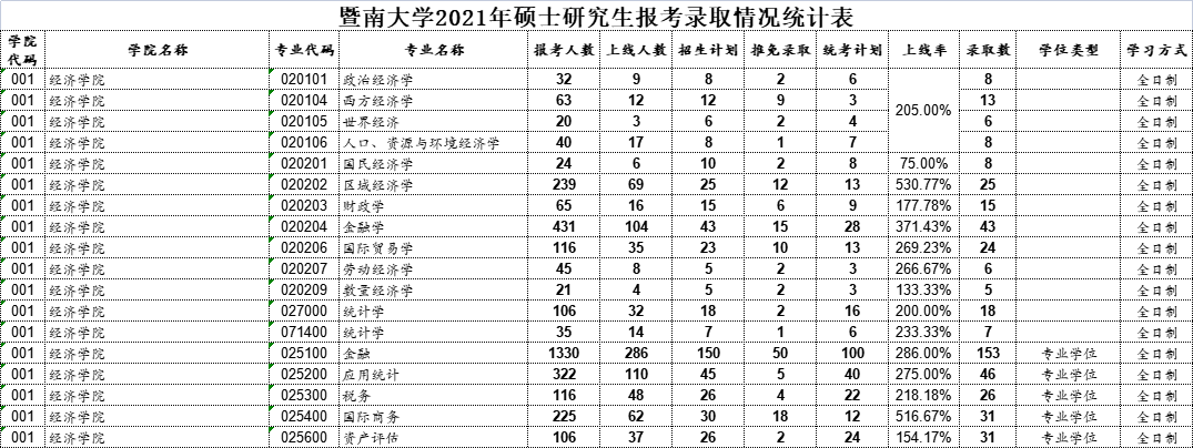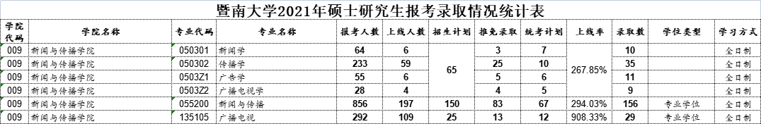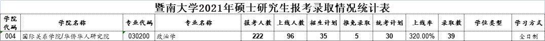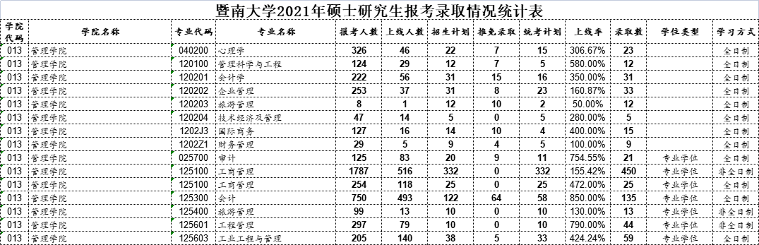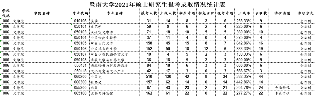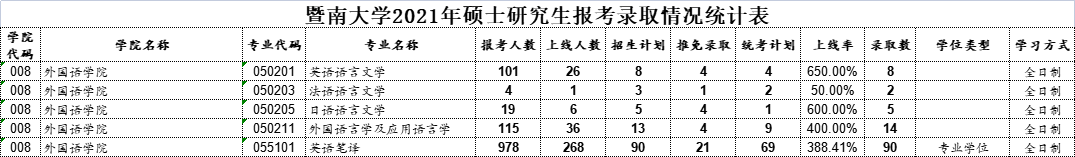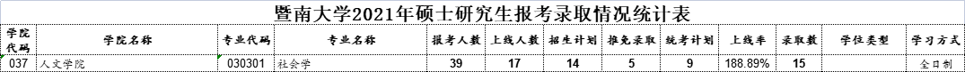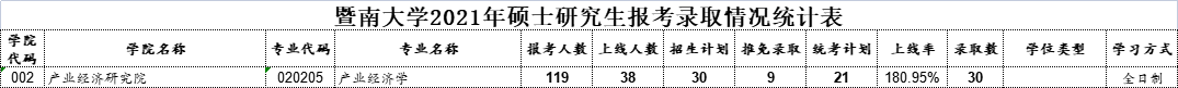 近日,22考研er期待已久的——暨南大学21考研报录数据正式公布!