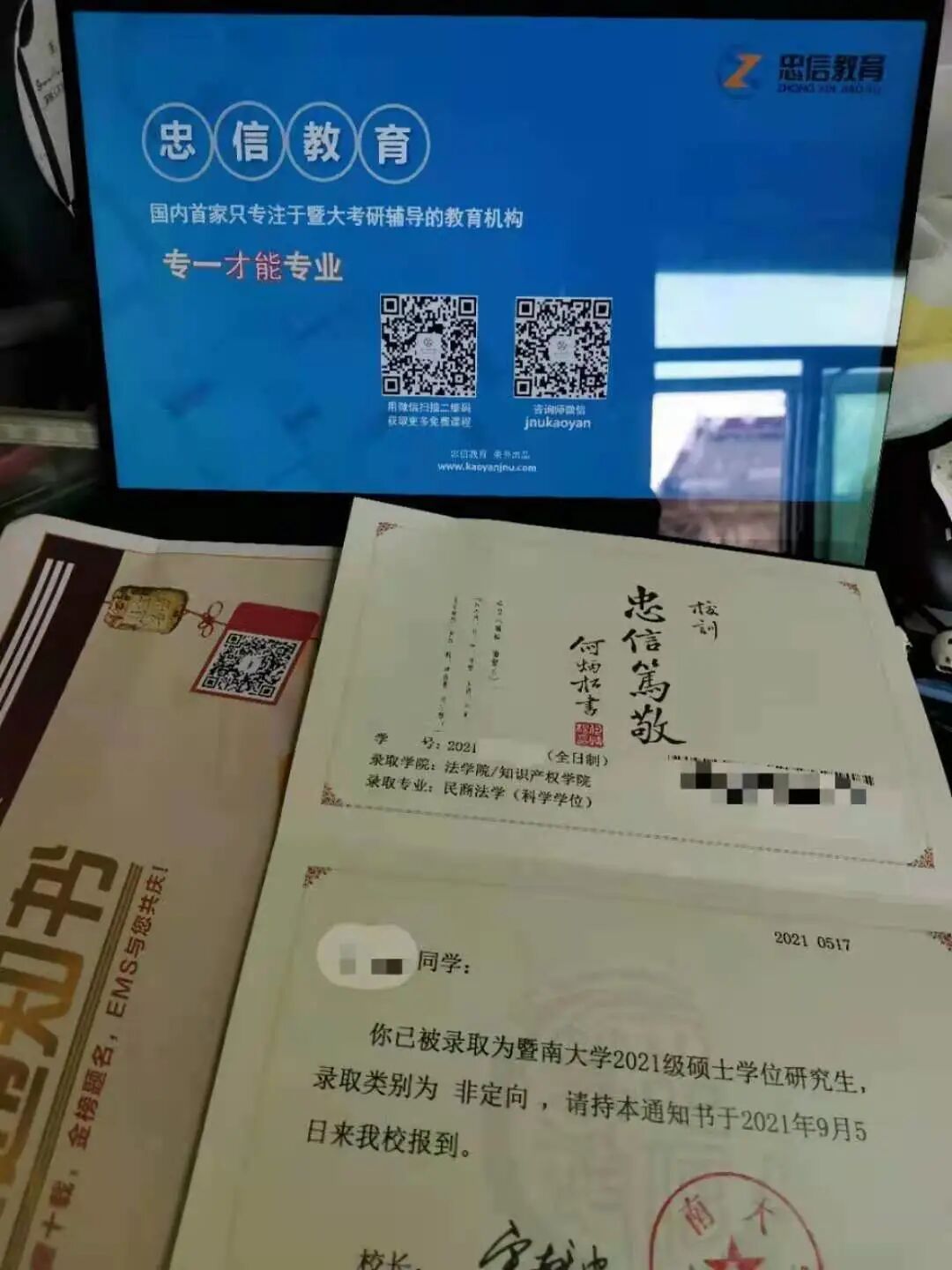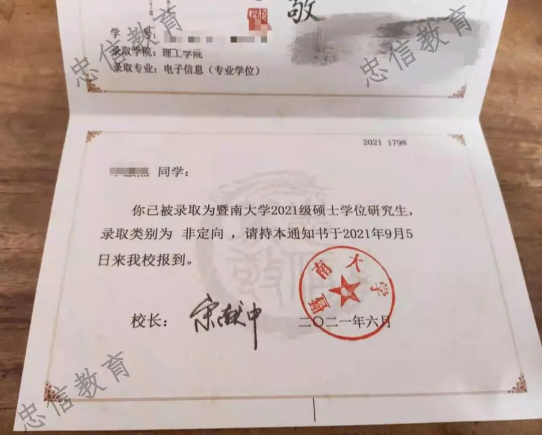 为了让各位考研小伙伴尽快摆脱这种负面的状态,小编想把忠信教育一部分学员的通知书给你们看看。