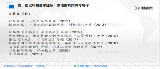 大作文写作 暨大百科选择题25分+名词解释25分+应用文40分+百科大作文60分 大作文10月份可以开始每周开始阅读作文纸条APP积累素材 每周或者每两周至少写一篇大作文 最后一个月要经常练笔大小作文