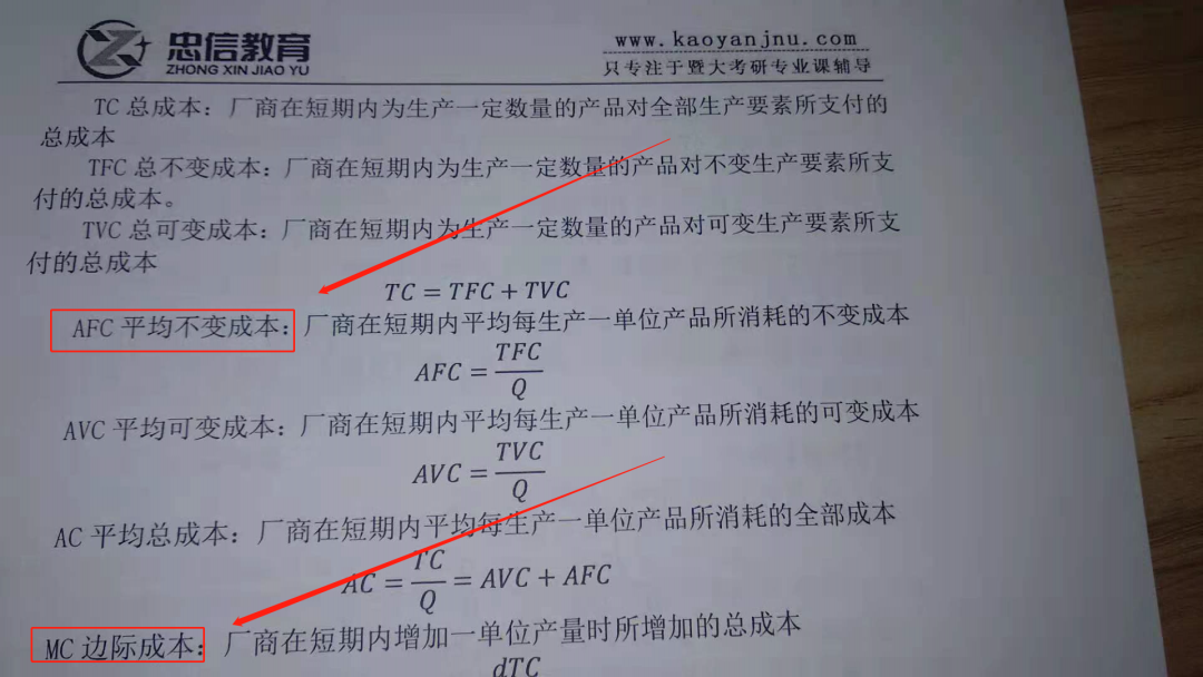 计算题:可变成本AVC、边际成本MC