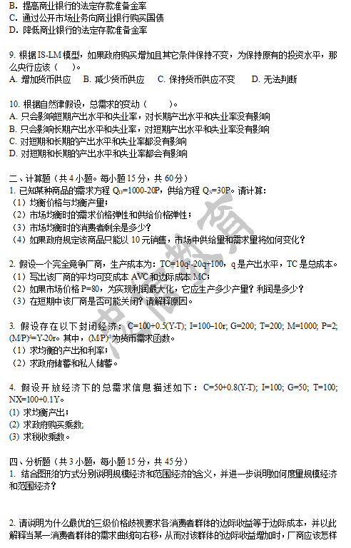 分析题:规模经济