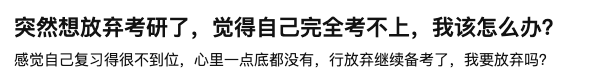 实话说,每年到这个时候都会有不少同学出现这种心理波动。在巨大的压力下,有这种想法很正常,但你不能任由这种想法发展,任由这种「放弃」的情绪滋长。