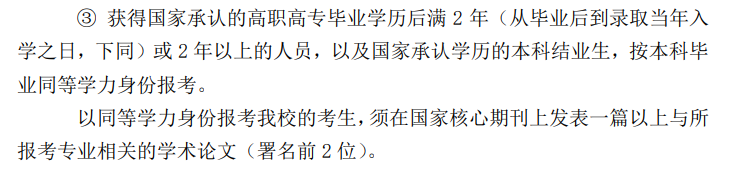 《北京大学2021年硕士研究生招生简章》中对于专科同学的报考要求,其中就涉及到了发表过相关学术论文。所以大家在备考前一定要弄清楚报考院校的报考条件哦!