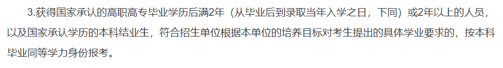 《2021年全国硕士研究生招生工作管理规定》中就明确了专科同学的报考要求: