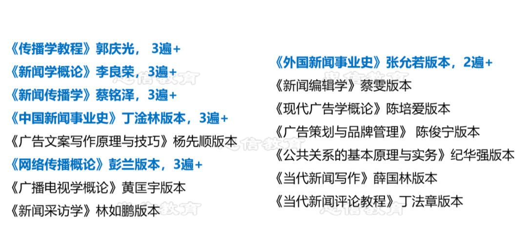 2.输入 输入的部分其实我分为了三个小板块,第一个小板块是参考书的阅读,这个书单其实在授课计划里面有给大家分享出来。 暨大的新传专硕考的书是真的特别多,这里应该有十多本的参考书,所以其实我也能理解大家在阅读参考书阶段有一定的焦虑感,或者说有一定的迷茫感。